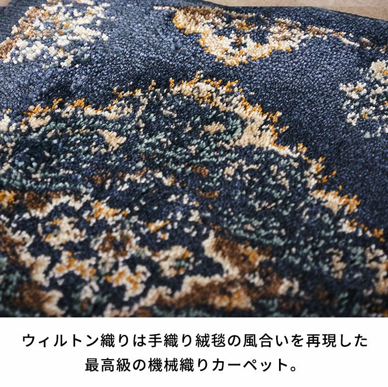 「ウィルトン織」は、手織り絨毯の風味を再現した、最高級の機械織りカーペット。