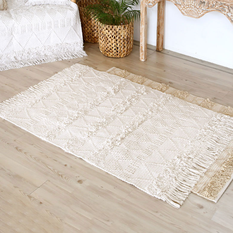 インド製 センターラグ リビングラグ リビング ダイビング 寝室 ベッドルーム  ハンドメイド 手仕事 rug carpet モロカン 引っ越し 模様替え 一人暮らし ワンルーム ギフト プレゼント ラグ ラグマット コットン ウール 140×200cm 約 1.5畳 アイボリー オールシーズン 春 夏 秋 冬 吸湿 速乾 保温 絨毯 じゅうたん マット 敷物 200cm 140×200 幅200 おしゃれ 北欧 BOHO ボーホー モノトーン モロッカン リゾート エスニック オリエンタル 西海岸風 [34596]