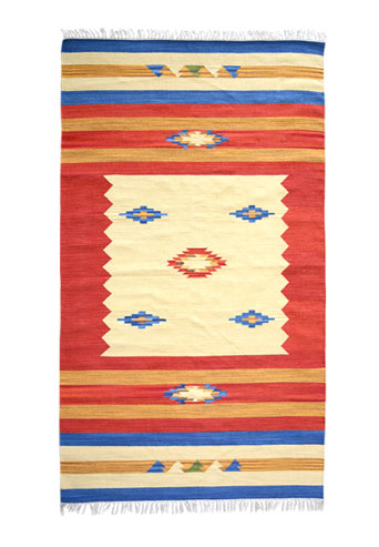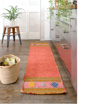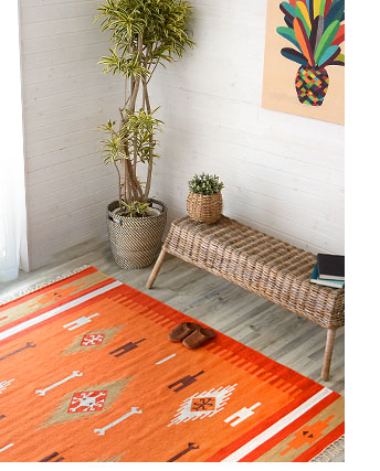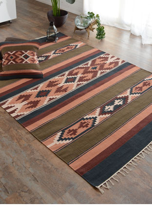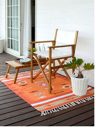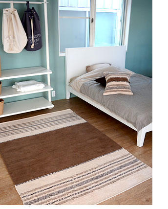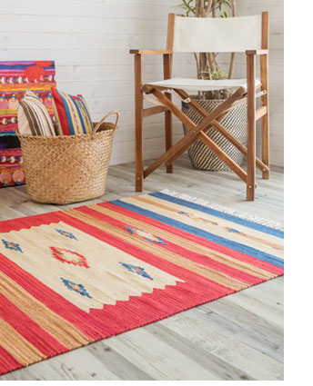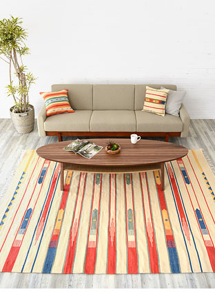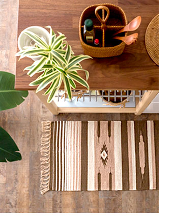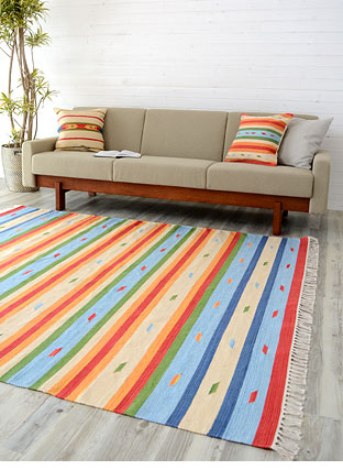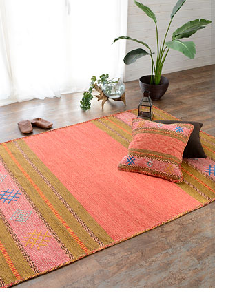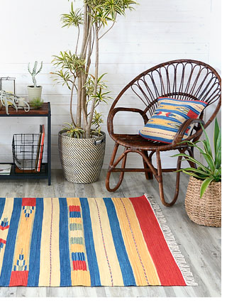 ▲ちょっぴりスパイスをきかせながらもお部屋にとけこむ、インド生まれのラグ