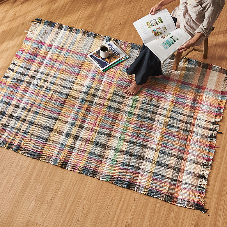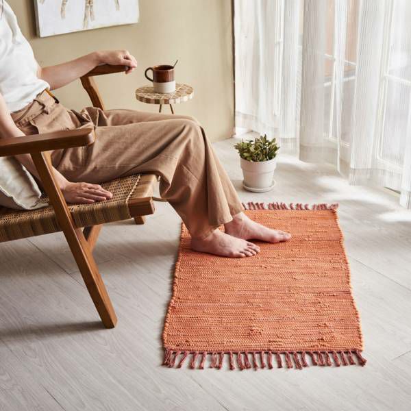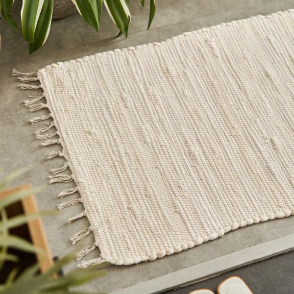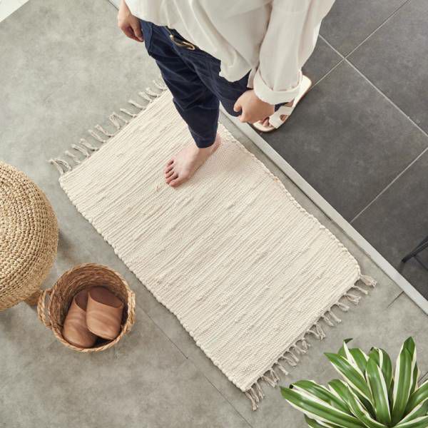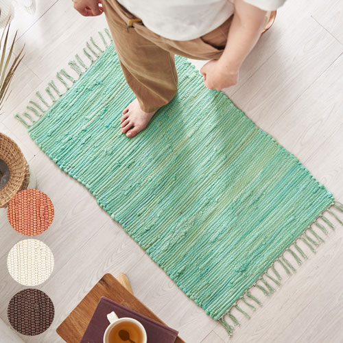コーナーラグ 手織り 屋内用 オールシーズン 春 夏 秋 冬 風水 玄関マット フリンジ 無地 インド製 コットン100% 約 50×80cm ラグ ラグマット 夏用 コットンラグ 室内 キリム風ラグ アクセントラグ アウトドア キャンプ リビング 寝室 おしゃれ 北欧 綿100% 西海岸 韓国 ボーホー モダン ヴィンテージ 風 [34526]