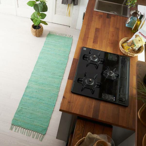 ロングカーペット 台所 キッチンラグ 廊下用マット キッチンマット フリンジ 無地 インド製 コットン100% 約 45×180cm ラグ ラグマット 夏用 コットンラグ 室内 キリム風ラグ 廊下 ベッドサイド おしゃれ 北欧 綿100% 西海岸 韓国 ボーホー モダン ヴィンテージ 風 [34527]