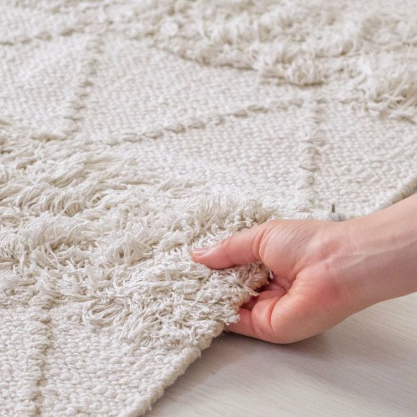 流行のコーディネートによく合う、インドコットン製のラグ。