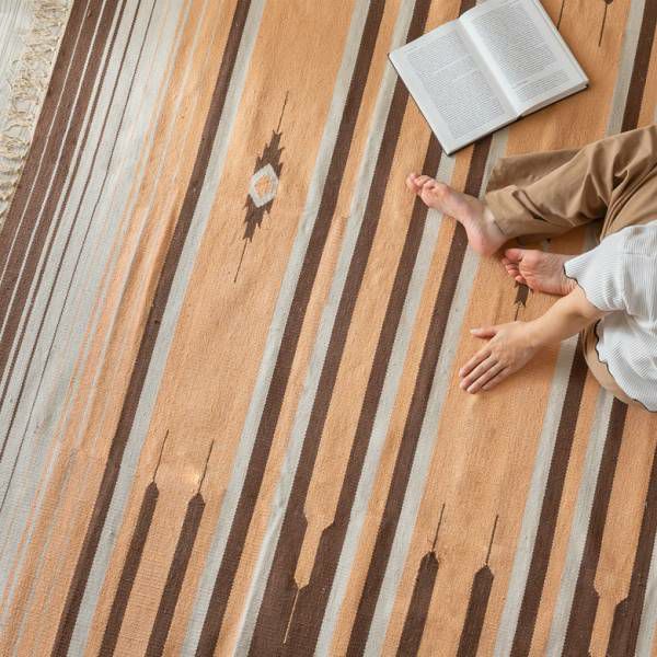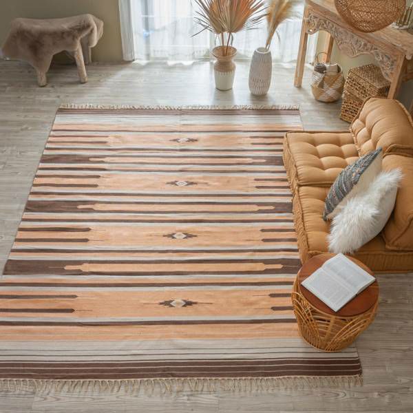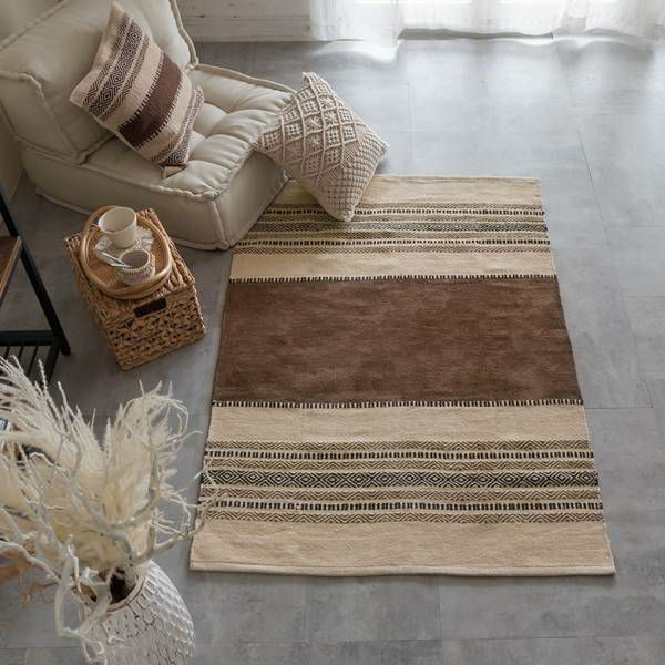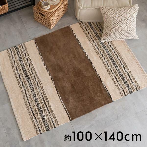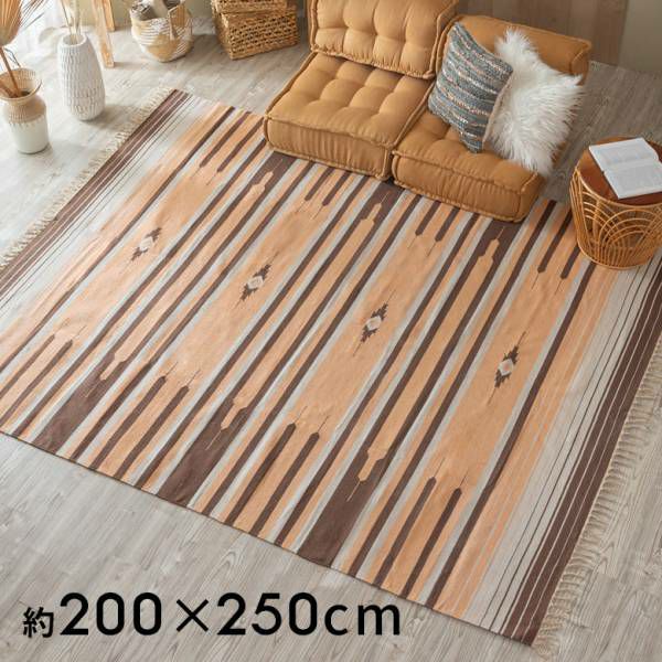インドコットン100% エスニックフリンジ柄 ラグ |