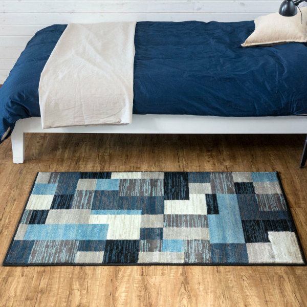 モザイク柄ラグ 玄関マットやキッチンマットに ラグ ラグマット 約100×140cm モザイク柄 パッチワーク柄 [eg83035]【 ホットカーペットカバー デザインラグ カーペット 長方形 ラグ ホットカーペット対応 新生活 引っ越し 絨毯 おしゃれ ミッドセンチュリー 西海岸 100cm 幾何学 青 デニムブルー ウィルトン織 】