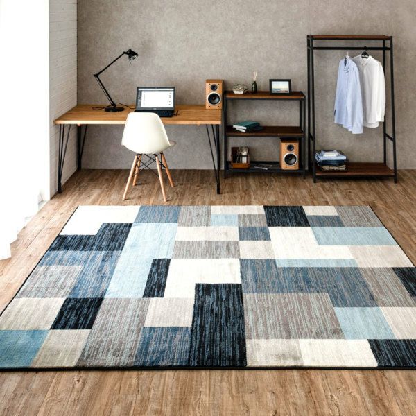 ミッドセンチュリーなモザイク柄のラグ。リビングなどに。 ラグ ラグマット 約200×250cm モザイク柄 パッチワーク柄 [eg83038]【 デザインラグ ホットカーペット対応 オールシーズン ラグ カーペット 長方形 ホットカーペットカバー 新生活 引っ越し 絨毯 おしゃれ ミッドセンチュリー 西海岸 200cm 幾何学 青 ウィルトン織 】