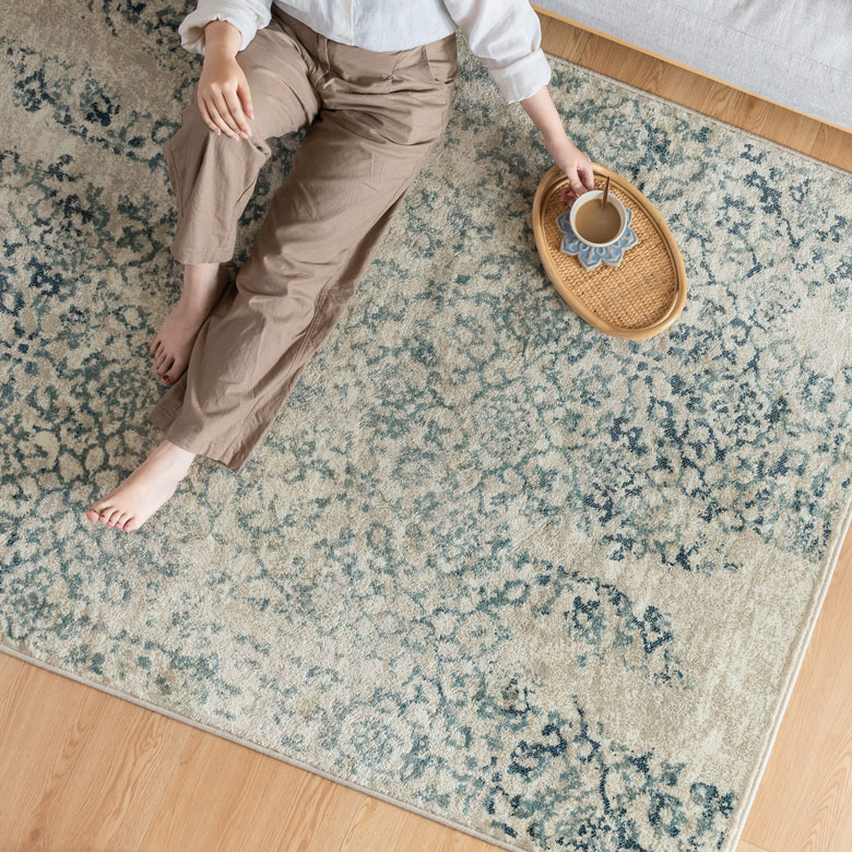 華やかに舞うフラワー柄や落ち着きのあるスモーキーカラーのオリエンタルラグは