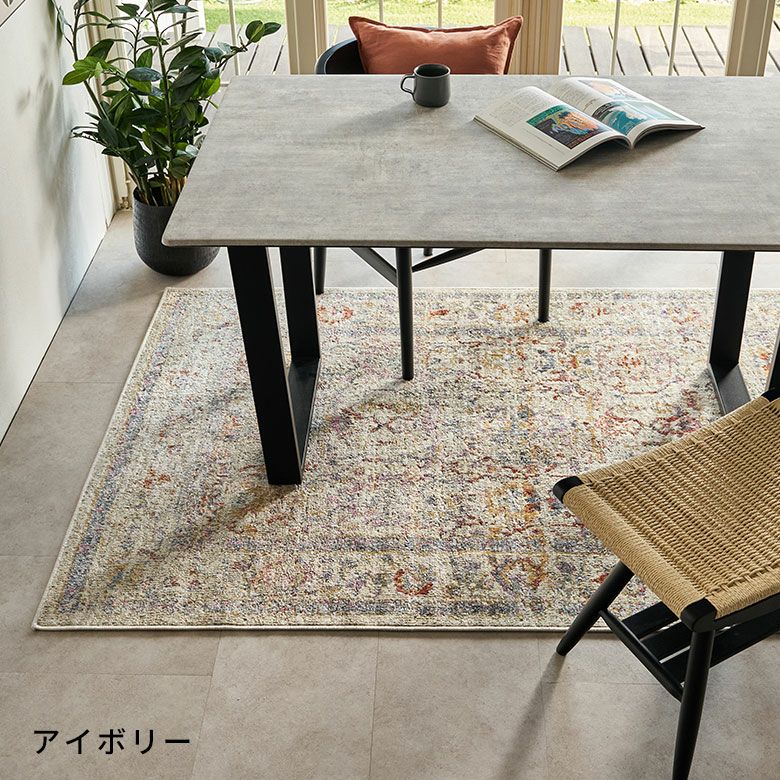 ペルシャ絨毯柄 アンティーク 風 130×190 ベージュ 白 夏用 ラグ ペルシャ 風 ウィルトン織り 花柄 アイボリー 長方形 約 133 × 190cm 1.5畳 1.5帖 絨毯 ラグマット カーペット センターラグ オリエンタルラグ リビングラグ ペルシャ絨毯風 ペルシャ柄 おしゃれ 北欧 韓国 韓国インテリア ビンテージ 風 ヴィンテージ 風 eg84163