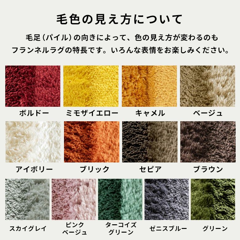 マイクロファイバーラグの特長です。いろんな表情をお楽しみください。