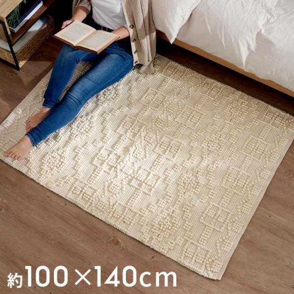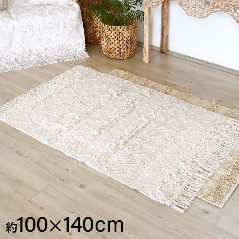 インド製 センターラグ リビングラグ リビング ダイビング 寝室 ベッドルーム  ハンドメイド 手仕事 rug carpet モロカン 引っ越し 模様替え 一人暮らし ワンルーム ギフト プレゼント ラグ ラグマット コットン ウール 100×140cm 約 1畳 アイボリー オールシーズン 春 夏 秋 冬 吸湿 速乾 保温 絨毯 じゅうたん マット 敷物 140cm 100×140 幅140 おしゃれ 北欧 BOHO ボーホー モノトーン モロッカン リゾート エスニック オリエンタル 西海岸風 [34595]