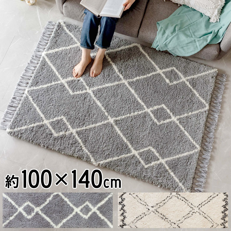 100×140 リビング ダイニング 寝室 ベッドルーム センターラグ フリンジ メッシュ ライン ベース シンプル エスニック 柔らか かわいい アナログ デザイン 柄 ギフト プレゼント ラグ ラグマット 約 100×140cm ベニオワレン風 長方形 滑り止め 付き カーペット 絨毯 じゅうたん ホットカーペット 床暖房 対応 可 敷物 マット オールシーズン 春 夏 秋 冬 シャギー モロッカン おしゃれ 北欧 リゾート 雑貨 インテリア 西海岸風 [b2c-]