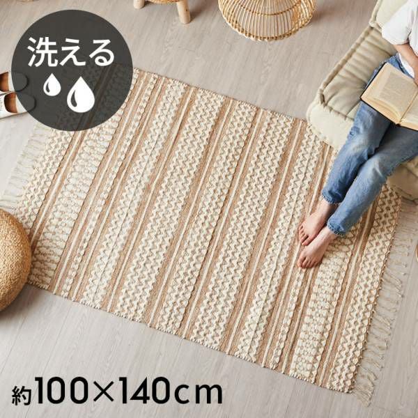 ラグカーペット 麻 天然素材 黄麻 ハンドメイド ラグ スクエア 長方形 ジュートラグ 約 W 100cm D 140cm D 2cm ナチュラル ベージュ [34437]【 ラグマット カーペット コースタル 西海岸風 カリフォルニアスタイル インテリア おしゃれ 絨毯 マット らぐ シンプル 爽やか ナチュラル サーフスタイル マリンスタイル 】