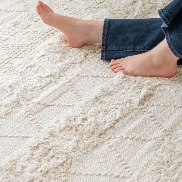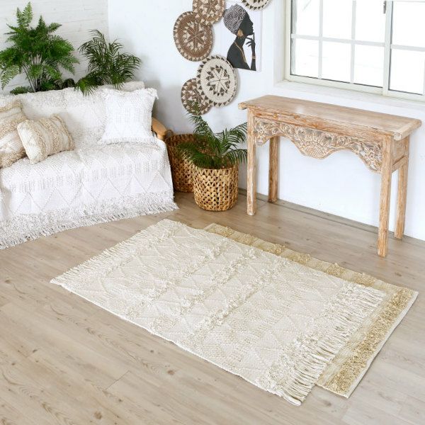 ホワイトボヘミアン柄 ラグ ぽこぽことした編み目が可愛らしい |