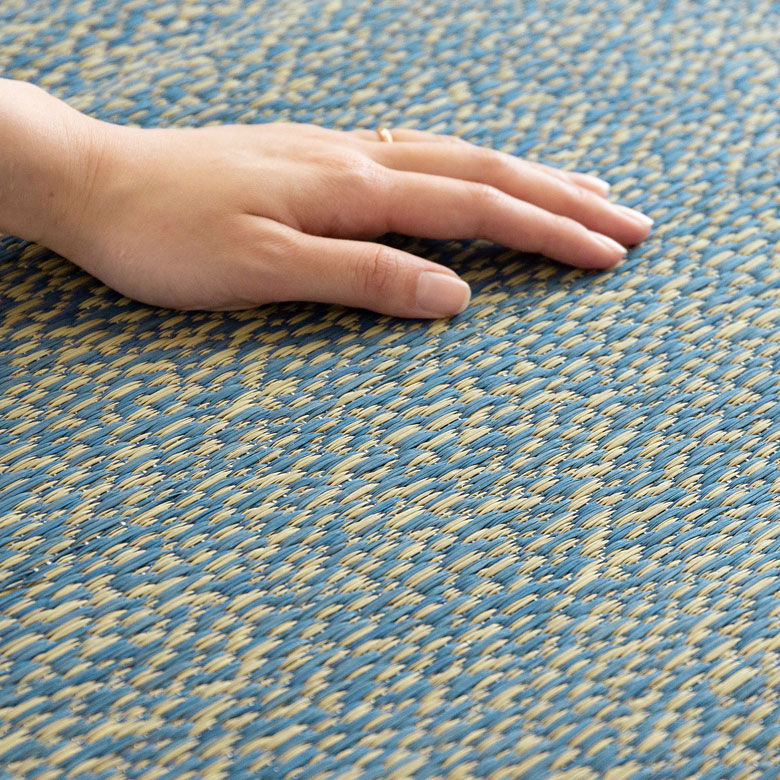 手織り リビング インド BOHO ボーホー 絨毯 敷物 マット ラグ ラグマット 約 130×190 cm 長方形 ジュート 麻 コットン 綿 ナチュラル ブルー アイボリー [34445-bl]【 デザイン カーペット 天然素材 ハンドメイド おしゃれ 北欧 オールシーズン 春 夏 秋 冬 リゾート コースタル 幾何学模様 アジアン エスニック 男前 西海岸風 】