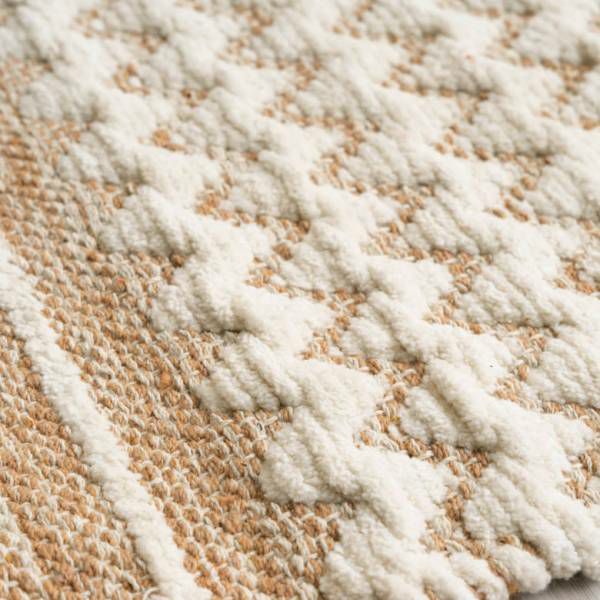 手織り リビング インド BOHO ボーホー 絨毯 敷物 マット ラグ ラグマット 約 130×190 cm 長方形 ジュート 麻 ウール 羊毛 ナチュラル [34446-nt]【 デザイン カーペット 天然素材 ハンドメイド おしゃれ 北欧 オールシーズン 春 夏 秋 冬 リゾート ヴィンテージ風 幾何学模様 アジアン エスニック 男前 西海岸風 】