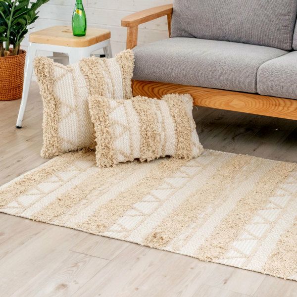 ラグのデザインを活かしたホワイトモロッカンスタイル