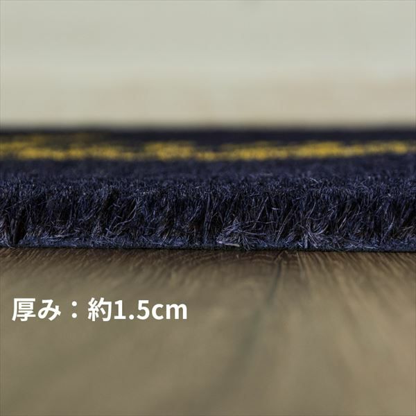 ![]() ココヤシ繊維を染めた柄部分。イエロー で染色された文字は、夜中でもくっきり。 |