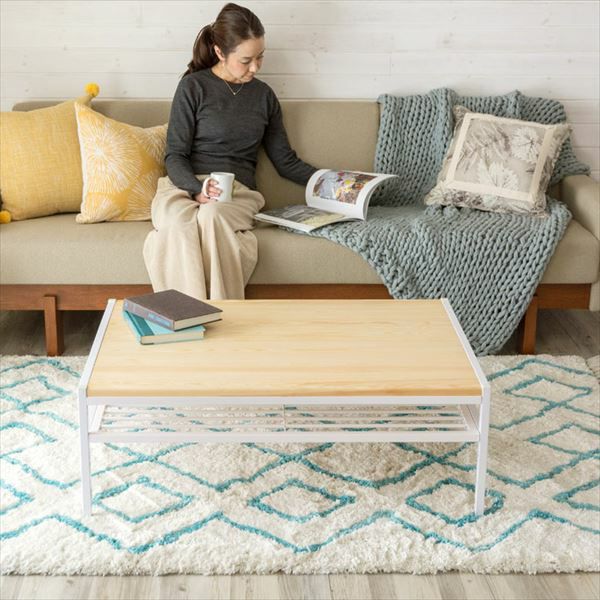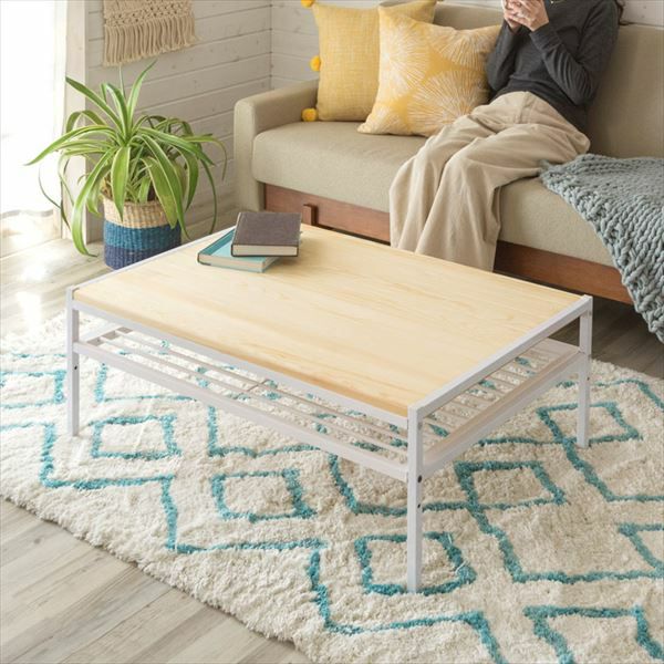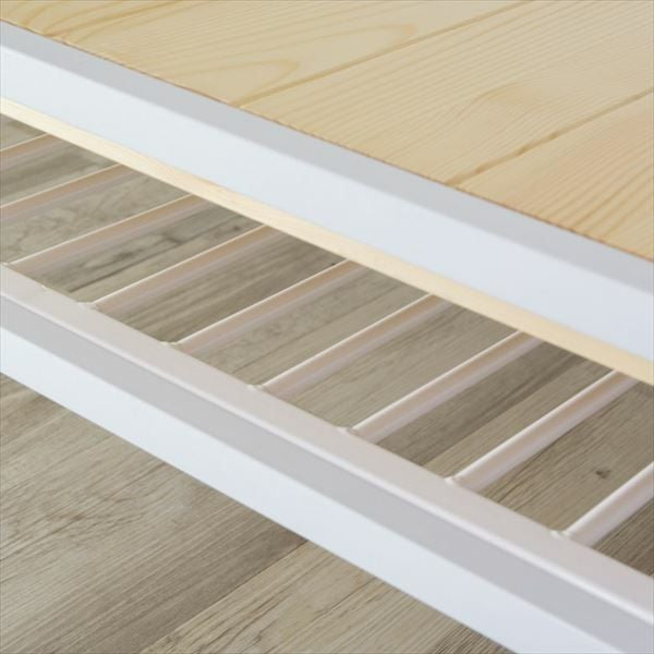 ナチュラルの天板と、ホワイトフレームが爽やかな印象で、