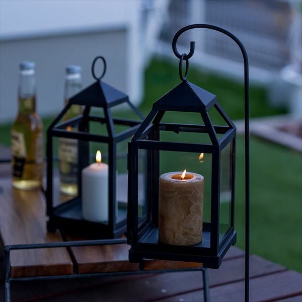 持ち手がついているので持ち運びも簡単!別売りのランタンスタンドにかけてディスプレイするのもおすすめ。