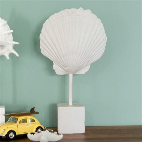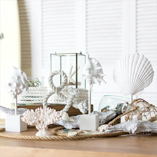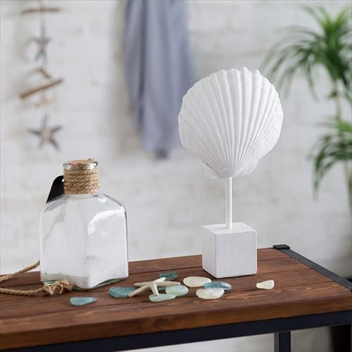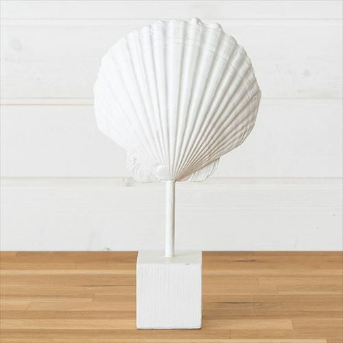 置くだけで西海岸のビーチハウスのようなインテリアに。 ホワイトレジンで出来たシェルモチーフのスタンドオブジェ[ホタテ貝](65892)【生活雑貨のELEMENTS本店】