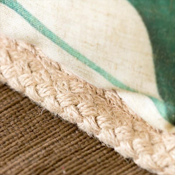 ジュート麻を編み込んだ2cm幅のパイピングがアクセント。