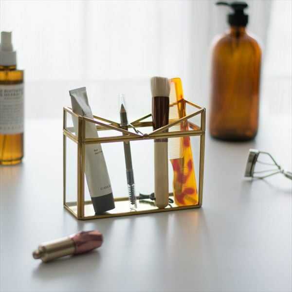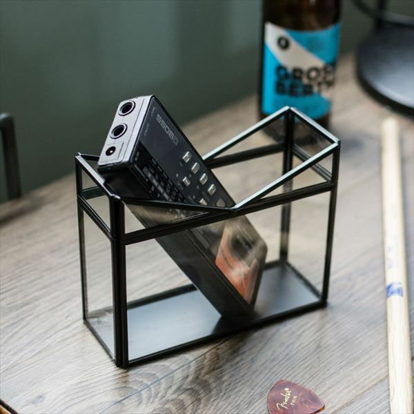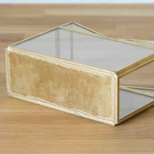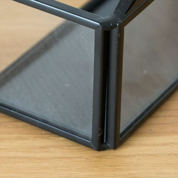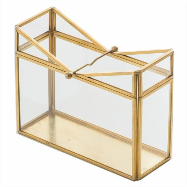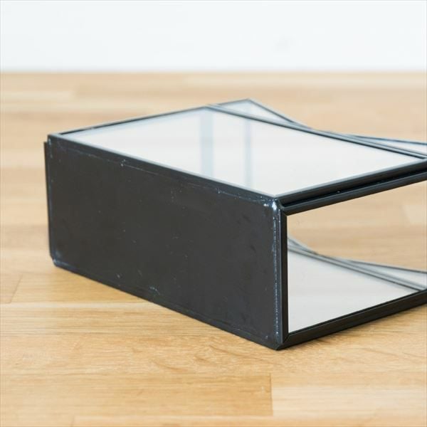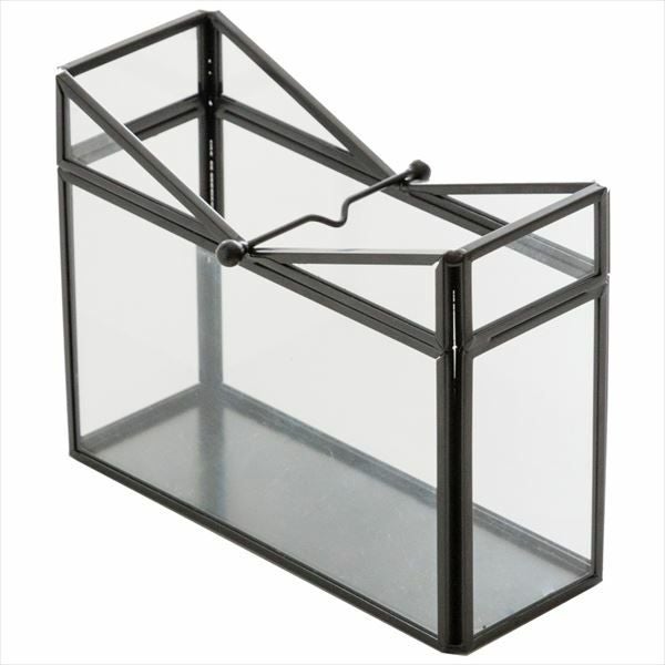 V字のデザインが印象的なガラスとメタルのフレームでできたボックス。