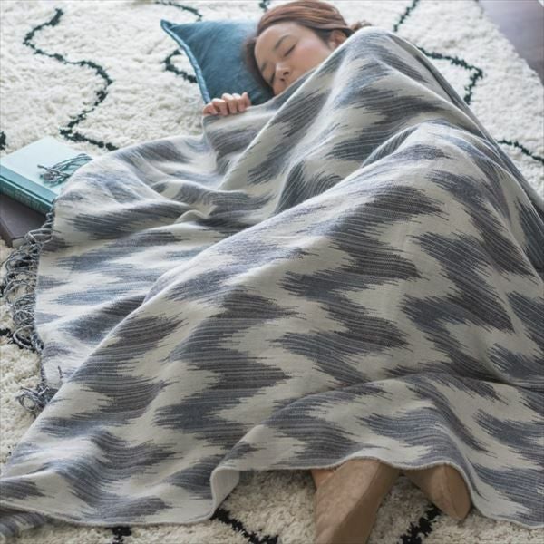 大きなギザギザが大胆なシェブロン柄を、ジャガード織りの薄掛けブランケットに。