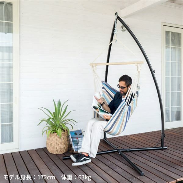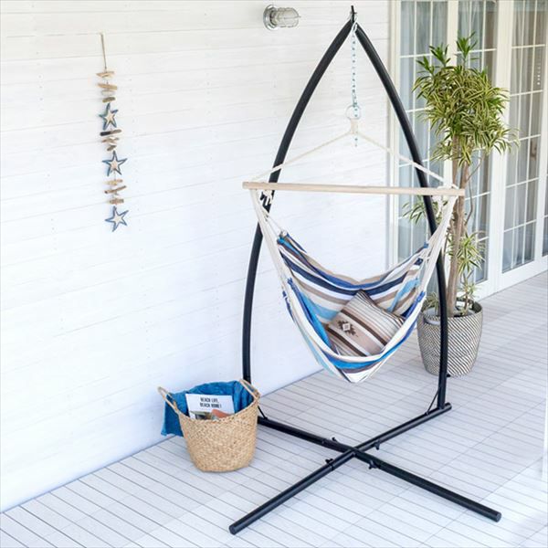 お部屋の中に置きやすい省スペースタイプのハンモックチェア。お部屋の中はもちろんですが、組み立て式なのでBBQやキャンプなどのアウトドアでも活躍してくれます。ゆらゆらと揺れる独特の動きであなただけの贅沢なくつろぎタイムを…。