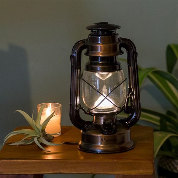 キャンプやグランピング、テラスでの夜のくつろぎ時間のお供に…。 懐中電灯じゃイマイチだし、キャンドルだと風で消えてしまったりしますよね。 LED使用のこちらのランタンはレトロなデザインがインテリアとしても使えて、 さらにエコ&安心なLEDだから一晩中安心して使えます。 プレミアムバージョンは上部のリフレクターにより、広範囲に光を拡散します。 アンティークな雰囲気のブロンズカラーも重厚感があり、特別な空間作りに活躍! ほの明るく光る黄色い灯りは、オイルランタンのように明るすぎず、 寝室の手元灯や、非常灯・防災グッズとしても活躍します。 |