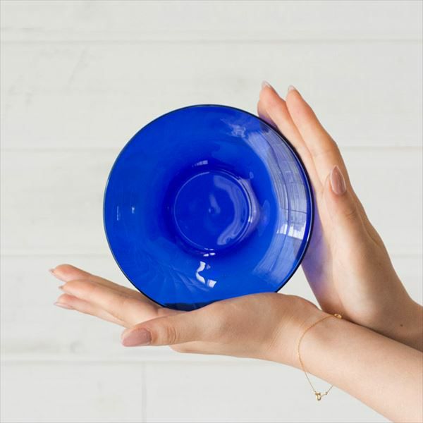 ガラスの原料に色を調合し、深みのある美しい瑠璃色を実現。