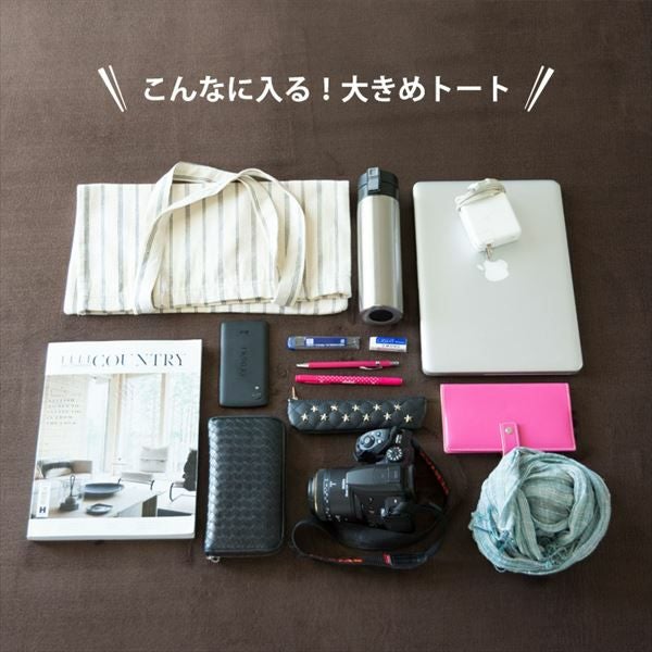 デイリーに使えるシンプルなデザインのストライプのトートバッグ。