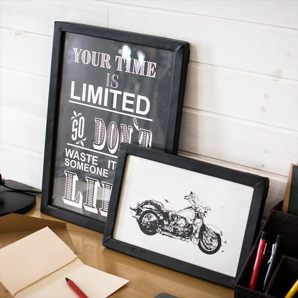 ブラックのフレームとガラスを組み合わせた、シンプルなデザイン。 壁に飾ったり立てかけてみたりと、お部屋にあわせて楽しみ方は様々! お気に入りの写真やポストカードを飾る 英字新聞やモノクロに印刷した雑誌の切り抜きなどを入れると、雰囲気たっぷり。