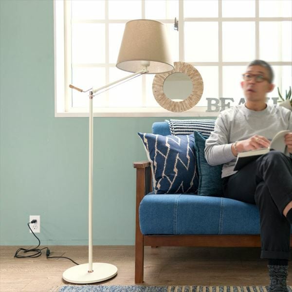 照明 フロアライト シンプル ナチュラル 西海岸 レトロ スタンドライト フロアスタンド 布シェード 電球付き E26/60W 角度調節可 木製ハンドル付き [92069]【 フロアライト スタンド照明 間接照明 一灯式 電気スタンド おしゃれ 北欧 西海岸 】