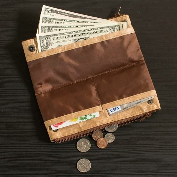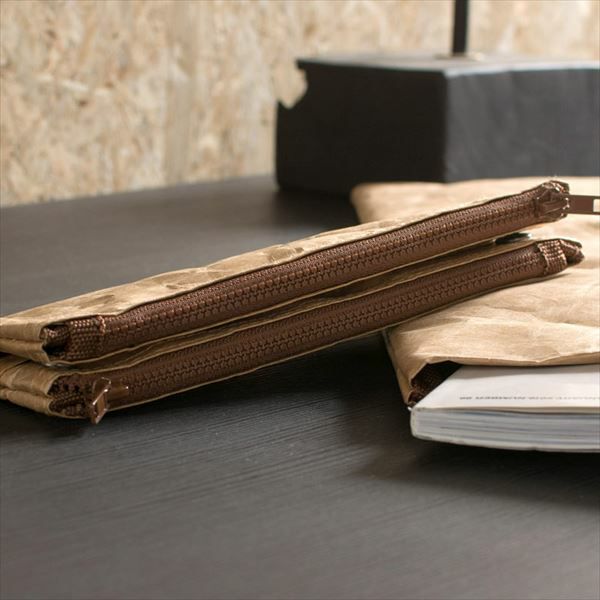 使い込んだクラフト紙でできたような質感のマルチケース。