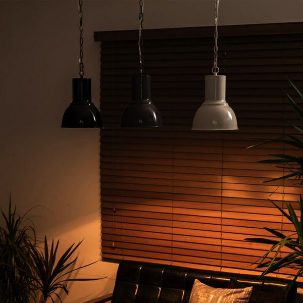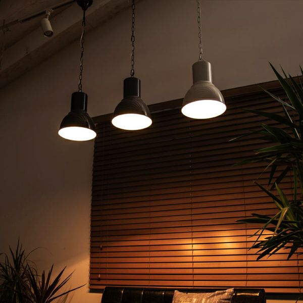 無機質でシンプルなメタルシェードは、複数吊るして空間を演出するのもおすすめ。