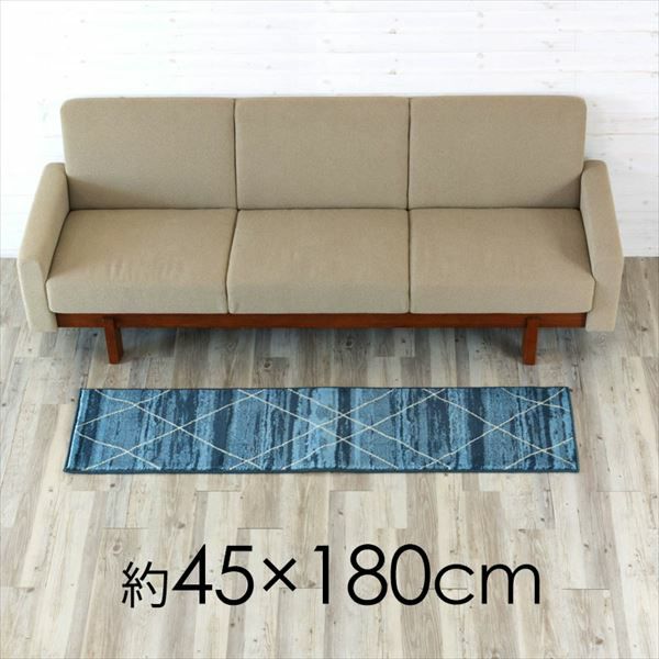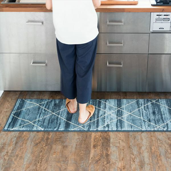 ベニオワレン風柄のラグマット。玄関マットやキッチンマットに ラグ キッチンマット 玄関マット 45×180cm ベニオワレン風 ブルー [eg83040]【生活雑貨のELEMENTS本店】