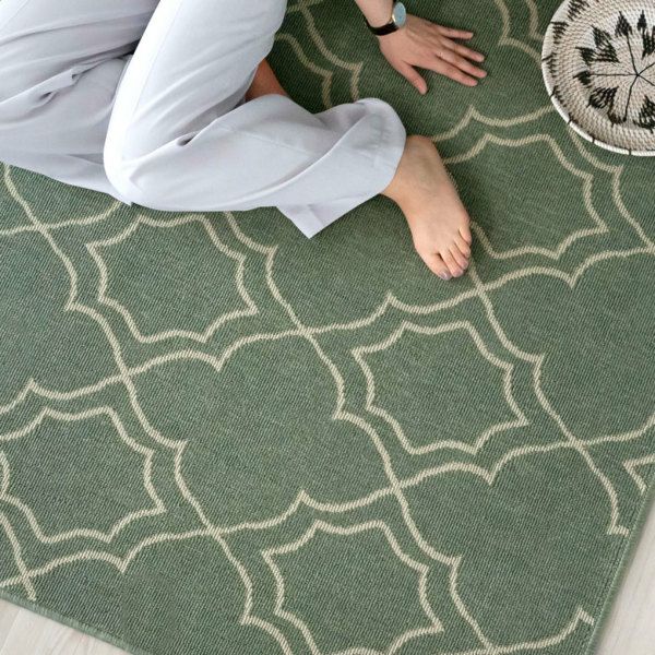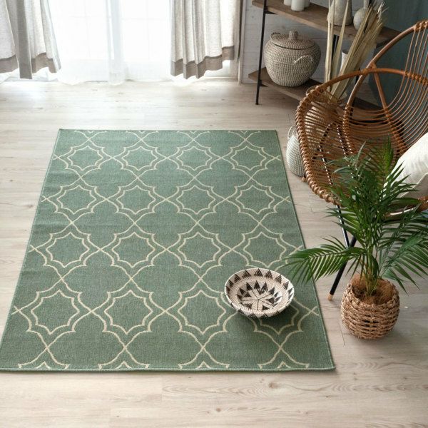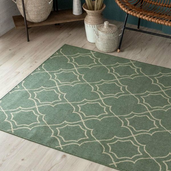室内、屋外のどちらでも使用できる、トレリス柄のデザインラグ。