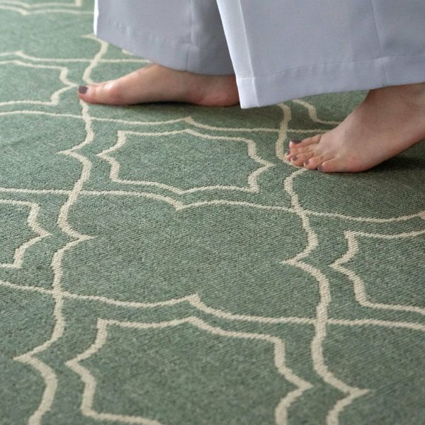 くすみのかかったグリーンに映えるホワイトの幾何学模様は、