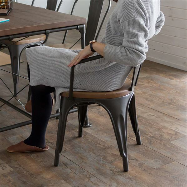 配管そのものの形状を生かした、無骨ながらも個性を放つダイニングファニチャーは、
