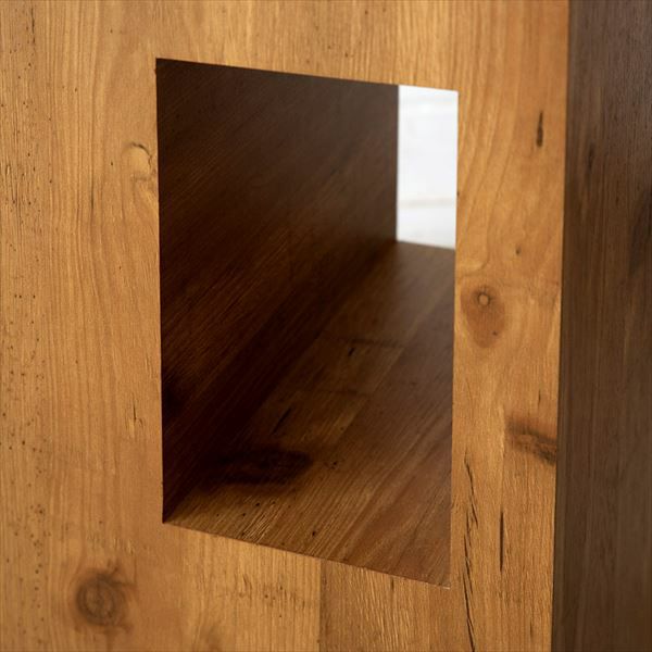 くり抜きデザインのサイドテーブル。縦向きでも横向きにしても使える2WAY仕様。