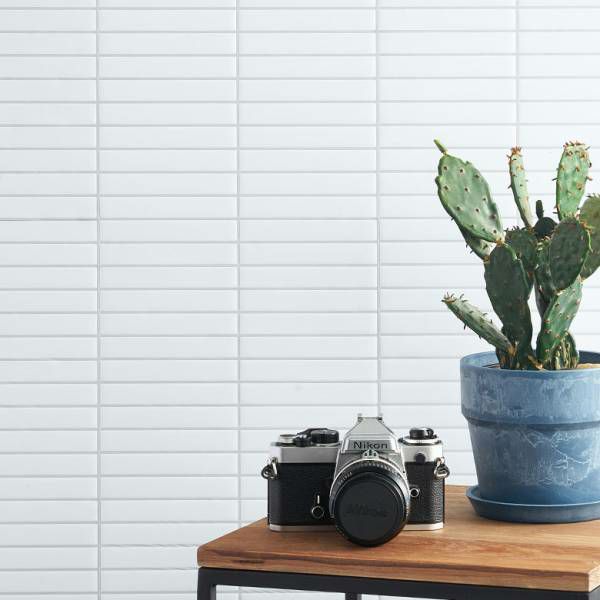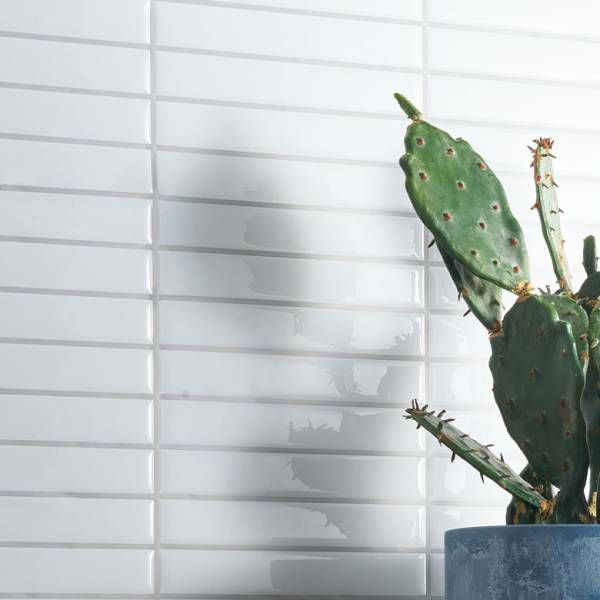 ボーダーを際立たせる、ホワイトのタイルにグレーのライン。