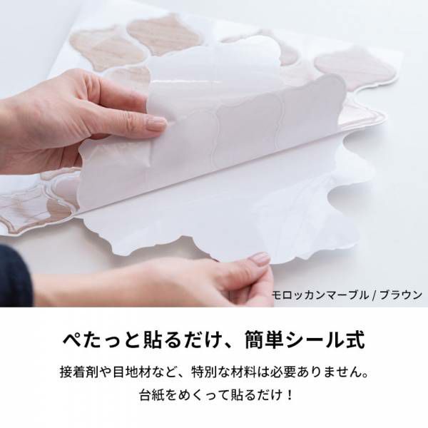 接着剤や目地材など、特別な材料は必要ありません。台紙をめくって貼るだけ!
