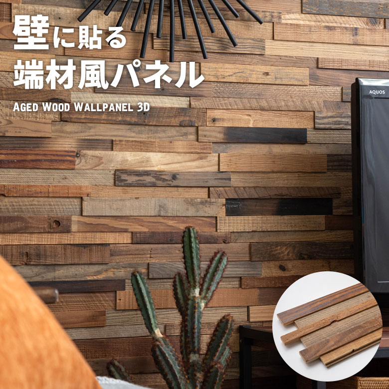 端材風天然木パネル 端材風古材天然木パネル