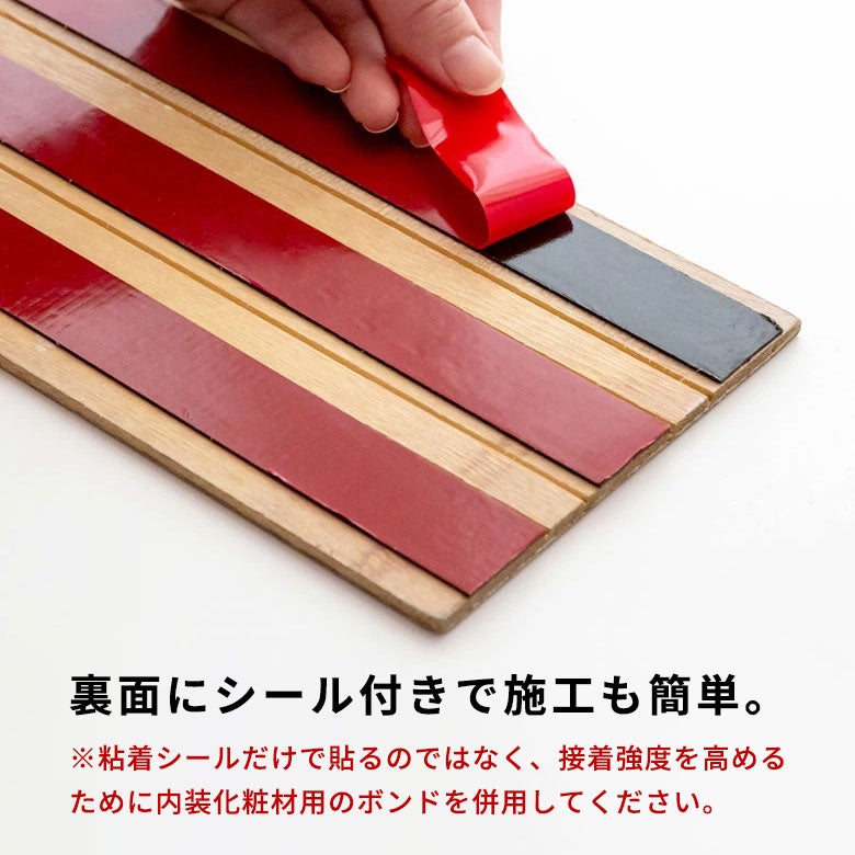 天然木の板壁をもっと手軽に楽しんで 裏面に強粘着のシールが付いた天然木パネル