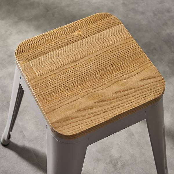 やわらかなグレーベージュのフレームに、ナチュラルカラーの天然木の座面。