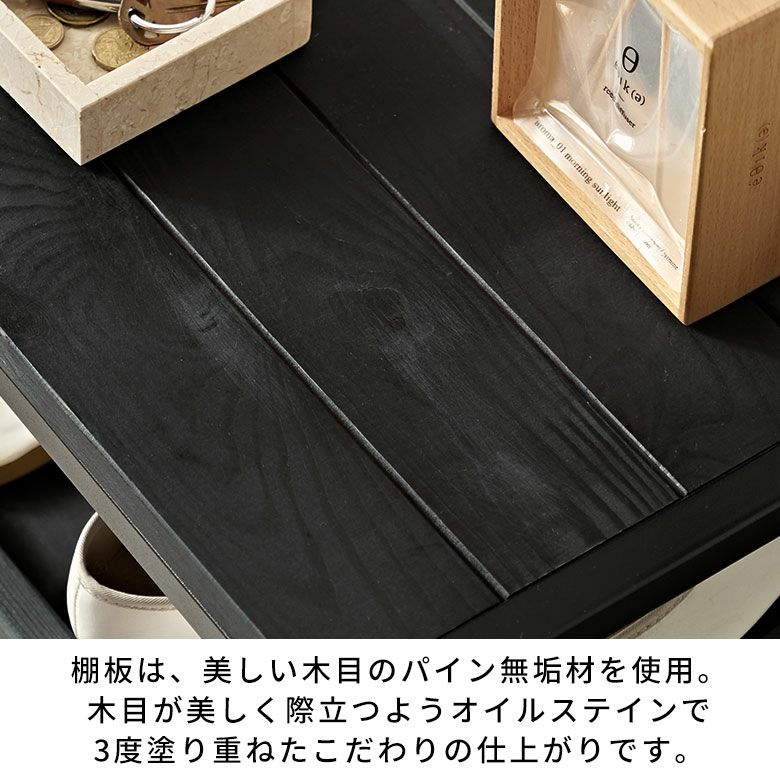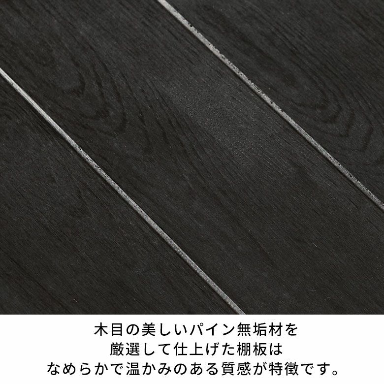 木目の美しいパイン無垢材を厳選して仕上げた棚板は