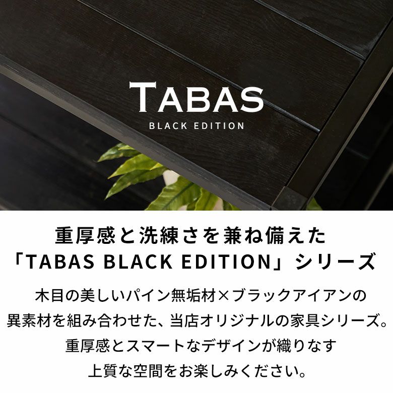 天然木無垢材×ブラックアイアン「TABAS BLACK EDITION」家具一覧へ >
