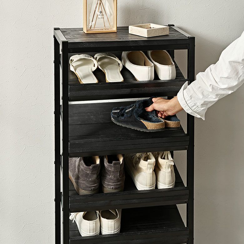 シンプルなデザインで棚板も調整できるため、アイデア次第で使い方色々。玄関での靴収納だけでなく、お部屋のディスプレイラックやブックシェルフ、小物収納ラックとしても。コンパクトなサイズ感でどんな空間にもマッチします。