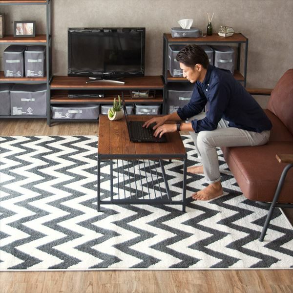 アクセントにワンルームや一人暮らしにおすすめサイズ ラグ ラグマット 約100×140cm シェブロン柄 ギザギザ ラグマット[sc-eg830]【生活雑貨のELEMENTS本店】