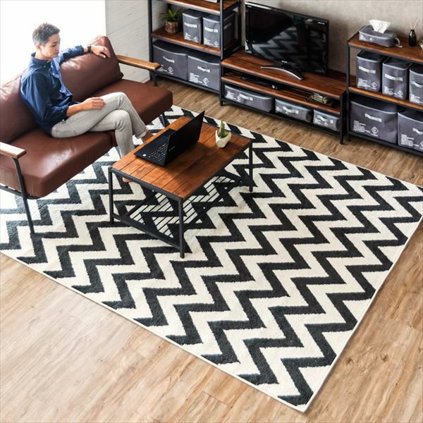 シェブロン柄ラグマットベッドルームやダイニングに ラグ ラグマット 約200×250cm シェブロン柄 ギザギザ ラグマット[sf-eg830]【生活雑貨のELEMENTS本店】