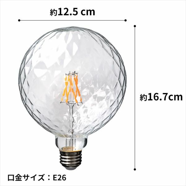 他の画像を見る エジソン電球 球形 インテりア照明 ひし形 カフェ風 西海岸 LED電球 レトロランプ エジソン型 ボール形 デザインガラス 大きめ 直径12.5cm E26口金 クリア [98410]【 電球 ダイアモンド エジソン電球 エジソン球 フィラメント 裸電球 照明 ペンダントランプ ペンダントライト おしゃれ レトロ ヴィンテージ インダストリアル 】 販売価格 ¥ 1,716 税込 在庫切れ 詳細を見る お気に入りに登録する